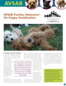 This statement hopes to increase awareness of the need for socialization in puppies and raise the issue of how vaccination protocols affect the socialization process in puppy classes.